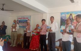 ८२ बर्षिय पति भाईकाजी शाक्य (ईण्डियन भूपू क्याप्टेन बिर्ख बहादुर थापा (भाइकाजी शाक्य) 1/4 GR गोर्खा बजार पोखरीथोक हाल मुग्लिङ) का फुलेका कपालमा रंग लगाउदै धर्मपत्नी ७५ बर्षिय बिष्णुमाया शाक्य। (तस्विरः राम बहादुर लामा)