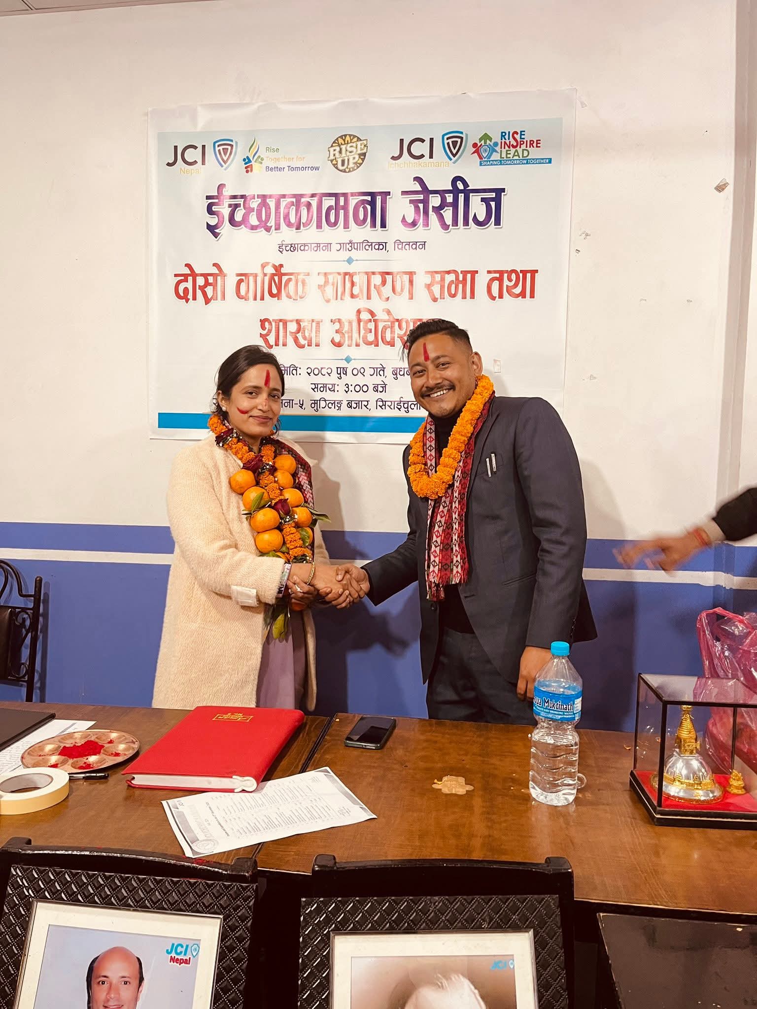 इच्छाकामना जेसिजका कार्यकारिणी उपाध्यक्ष प्रकाश श्रेष्ठले दिएको जानकारी अनुसार ईच्छाकामना जेसीजको दोश्रो साधारण सभा तथा शाखा अधिवेशनबाट अध्यक्ष पदमा रन्जिता सिलवालका, कार्यकारिणी उपाध्यक्षमा प्रकाश श्रेष्ठ तथा जेसि पुजा डल्लाकोटी, उपाध्यक्षमा मेलिना श्रेष्ठ, इन्द्रकुमारी थापा, आयुश कुमार शाह र शान्ती सिलवाल, महासचिव पदमा सनम पन्त, कोषाध्यक्षमा निष्चल श्रेष्ठ र कानुनी सल्लाहकारमा सन्देश गुरुङ निर्विरोध निर्वाचित भएका छन् ।